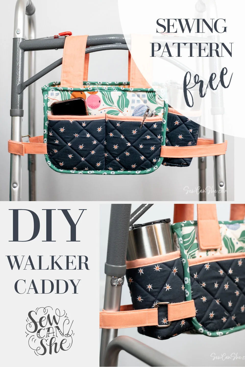 DIY Walker Caddy with a cup holder! free sewing pattern — SewCanShe